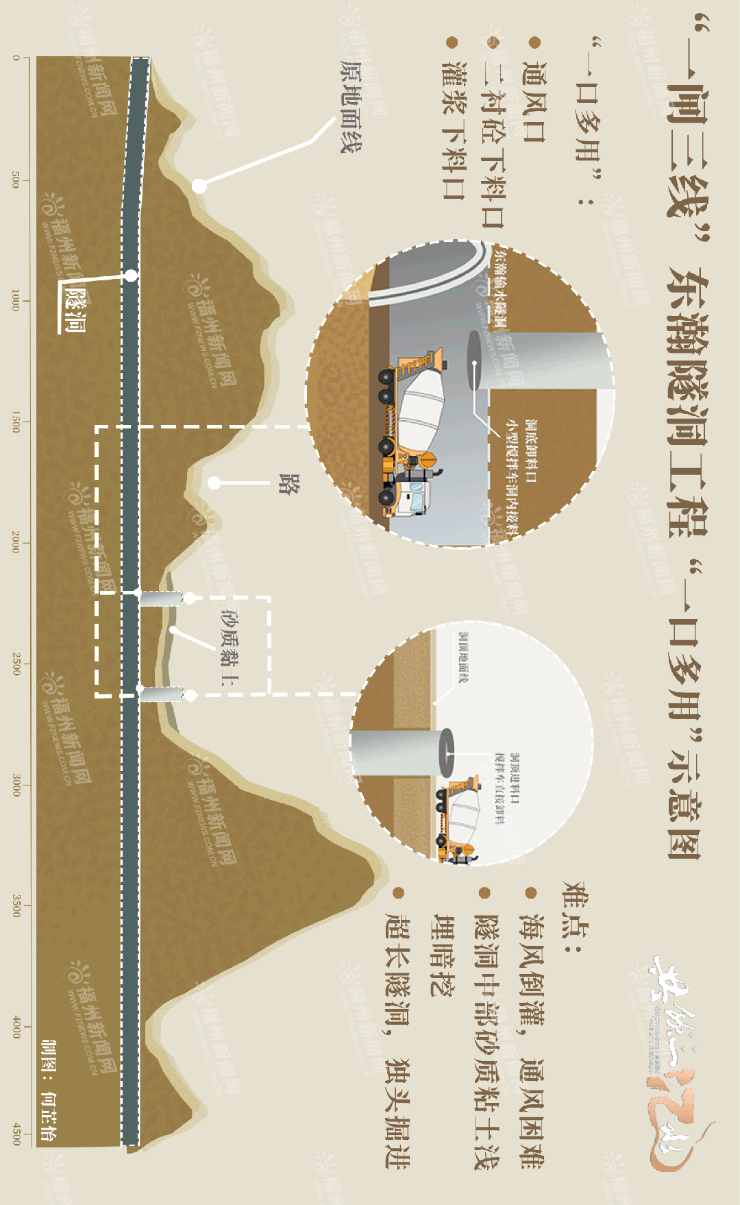 “这3个竖井最早是通风口,其后是二衬砼下料口,再后来是灌浆下料口, ‘一口多用’,对比常规施工方案,东瀚隧洞关键线路工期总量缩短了五分之二。”福州水务平潭引水开发有限公司副总工程师程玉泉介绍。