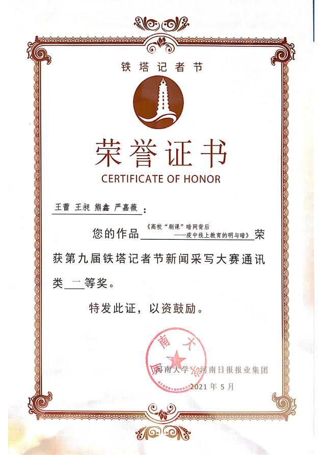 校园之外,王昶也记录了不少社会事件,发表了《五六十岁做“投资”,“我爸掉进传销的坑”》《高校“刷课”暗网背后——疫中线上教育的明与暗》等新闻作品。