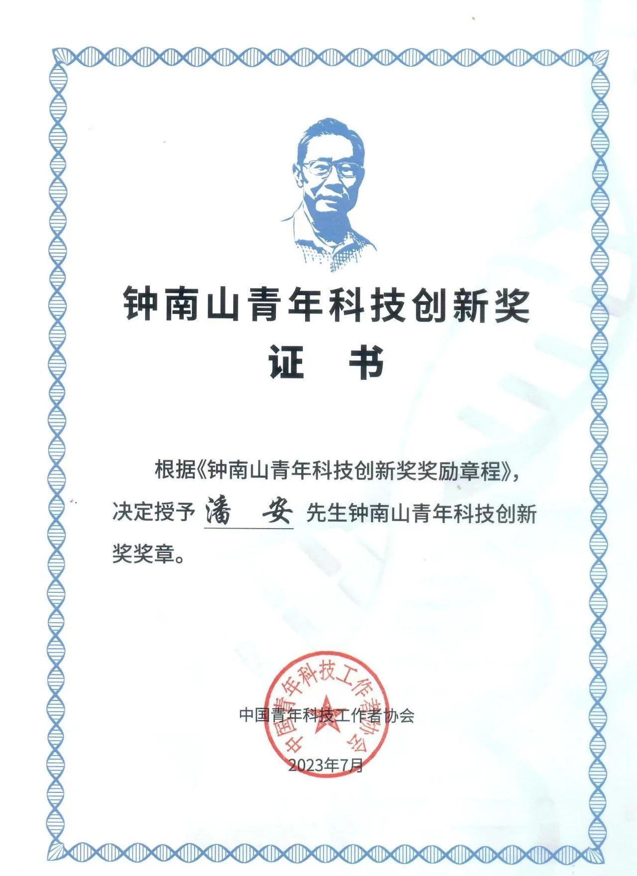 青年科技工作者获此殊荣