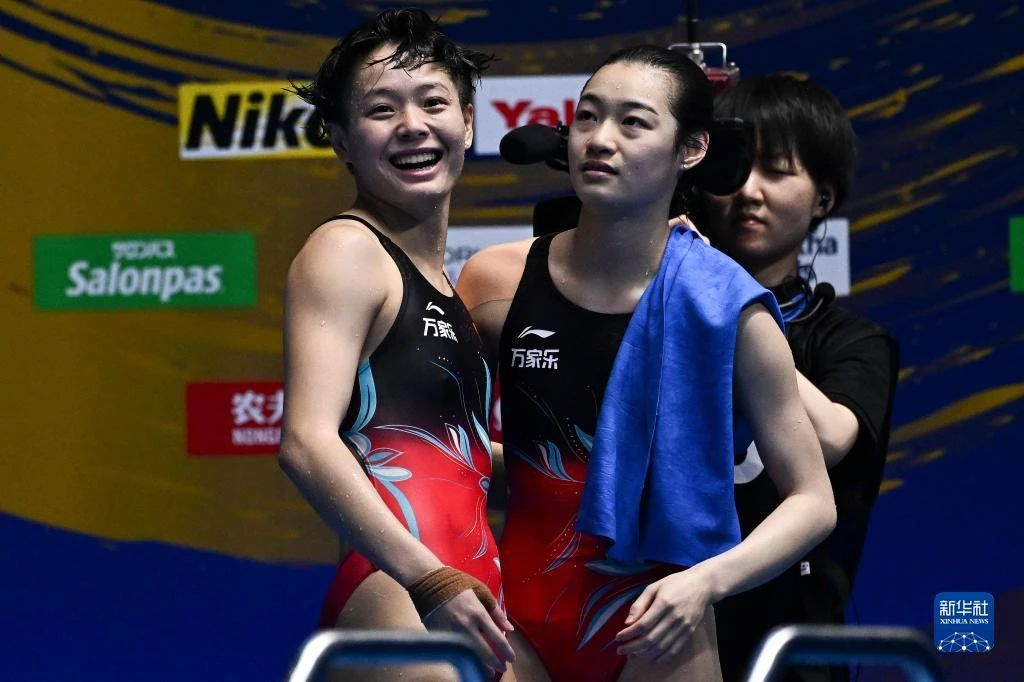 赛场上,昌雅妮和陈艺文一路领先,在预赛中两人就跳出了327.42分,以头名身份晋级决赛。