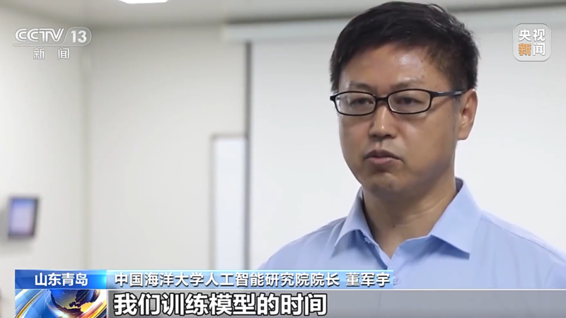 中国海洋大学人工智能研究院院长 董军宇:这种算力的话,和传统的算力是不一样的,它是人工智能的专用芯片,而青岛人工智能中心的芯片,它具有了高达百P的计算能力,我们训练模型的时间可以从过去的两年到三年,缩短到一年的时间。