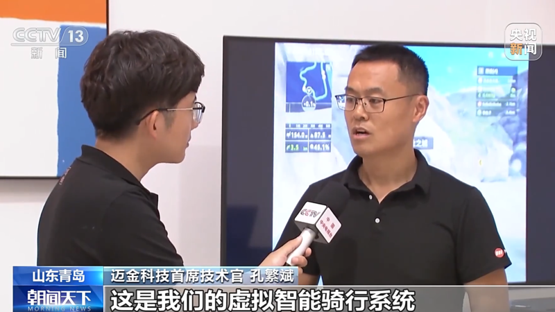 迈金科技首席技术官 孔繁斌:这是我们的虚拟智能骑行系统,这个系统通过虚拟现实、人工智能的一个技术,把我们的室外骑行体验搬到了室内。我们现在平台有70多万的注册用户,三四万的日活跃用户。