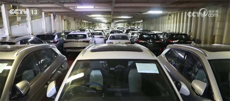 在码头,一辆辆国产新能源汽车正以每分钟3台车的速度装船。