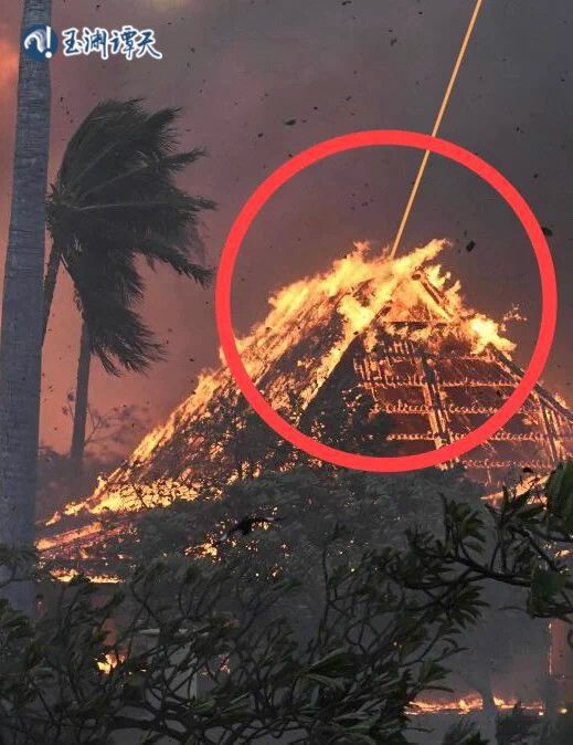 谭主注意到,过去几天,社交媒体上还流传着这样一张照片:一束激光打下来,点燃了夏威夷的房屋。有网友提出,夏威夷的大火会不会就是由美军自己点燃的?