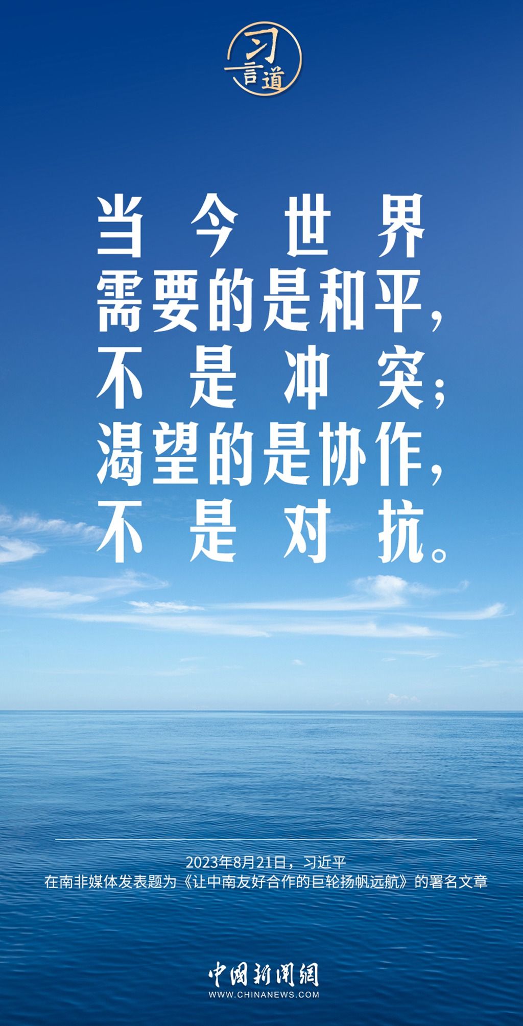 习言道|当今世界需要的是和平,不是冲突