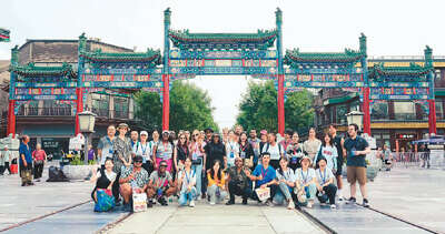 图为8月9日,暑期班学员参观中轴线时,在前门大街合影。
