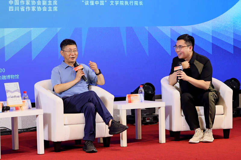 中国作协副主席阿来(左)分享新作《西高地行记》。主办方供图