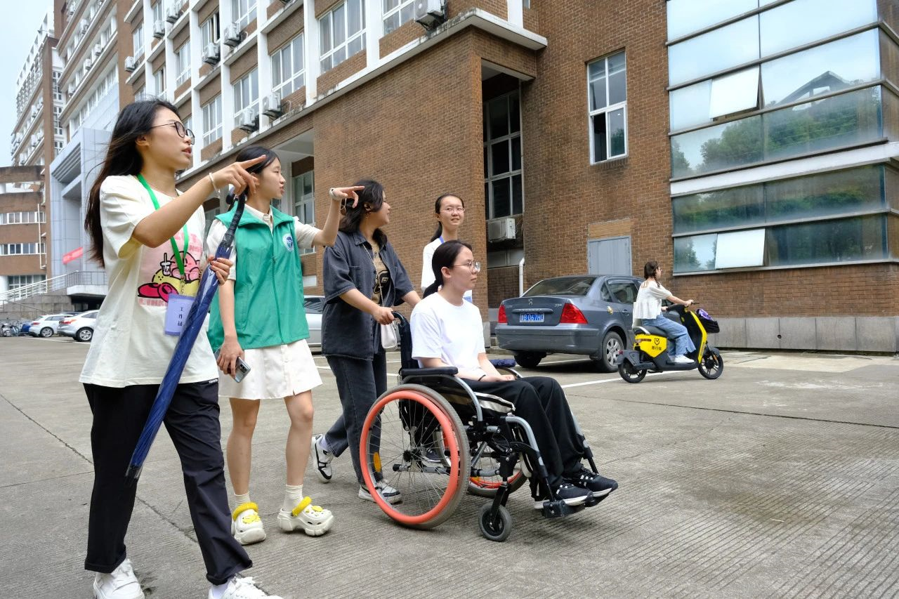她就是坐着轮椅来报到的