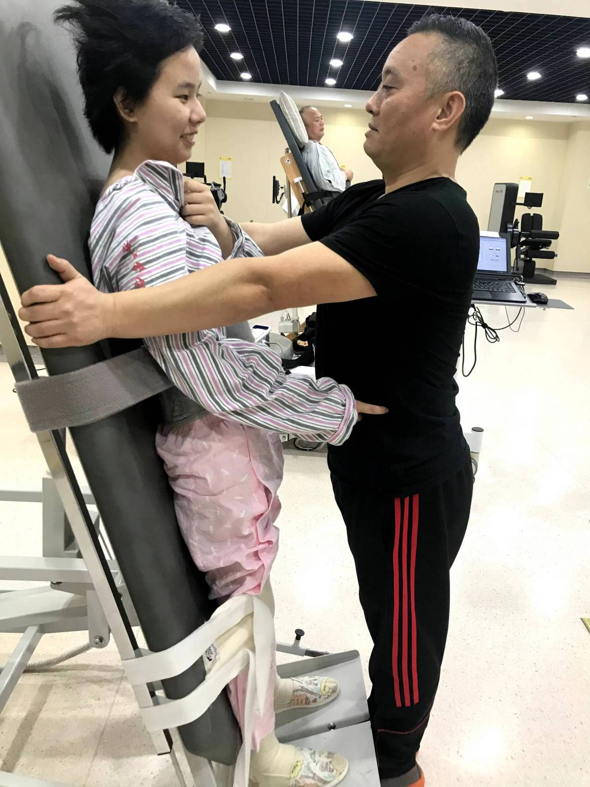 “考虑到徐同学的特殊情况,我们在教学楼安排了一间专用休息室,方便家人陪护,也方便她课间休息。另外,我们还各组建了一个教师帮扶小组和学生帮扶小组,方便徐天仪转移教室,上下楼师生帮忙抬一把。”阳明学院党委副书记王立衡介绍,学校了解到这一情况后非常重视,学校相关部门和学院通力合作,创造条件方便徐天仪父母入学陪读。
