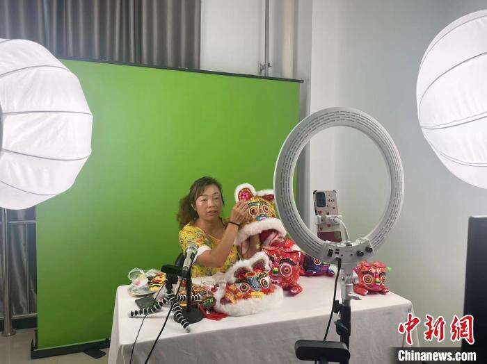 图为在千阳县西秦刺绣文化产业园内的电商直播。 金旭 摄
