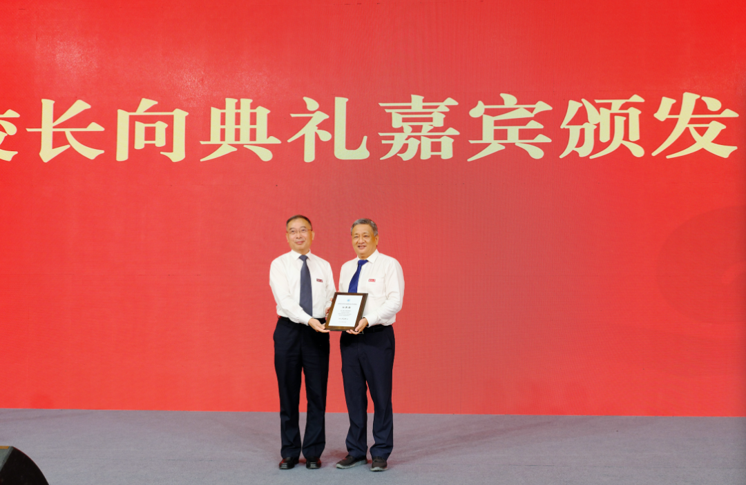 唐洪武为研究生新生代表土木与交通学院2023级直博生袁浩宸佩戴校徽