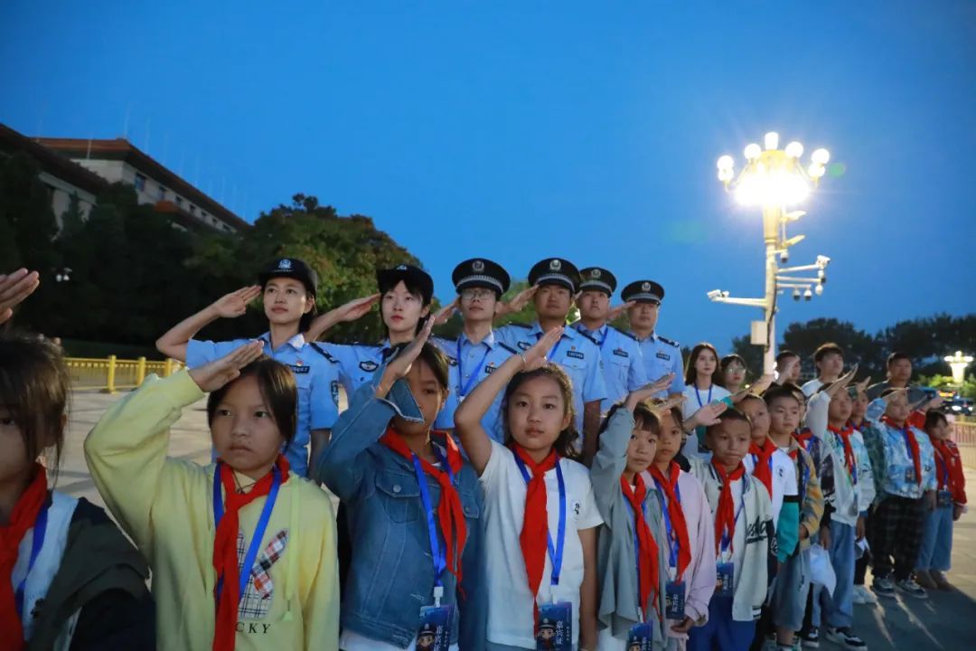 8月30日,孩子们与公大研支团志愿者一起在天安门广场观看升旗仪式。