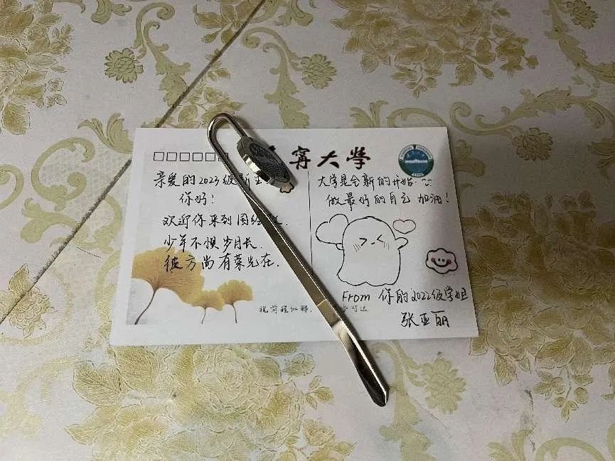 定制可乐、银杏叶书签、学院徽章、明信片等花式入学伴手礼琳琅满目