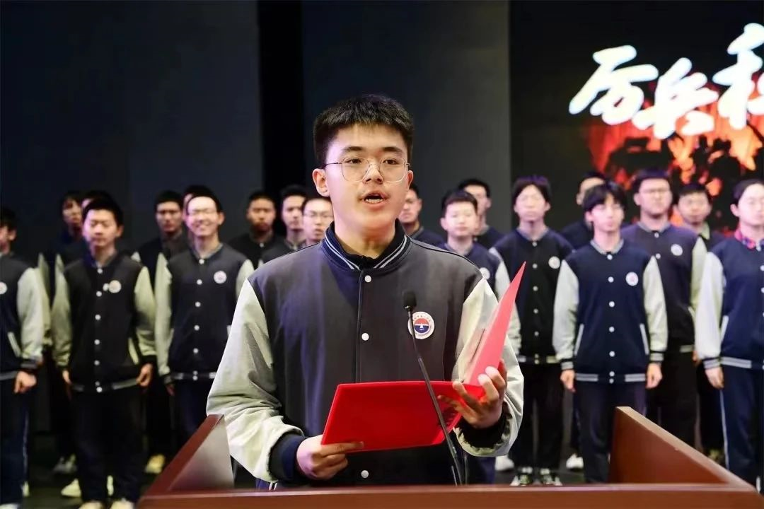 百日誓师,那始终是我此生难忘的时刻。我站在礼堂中央,带领下方与我同样心怀梦想、满怀热血的同学们发出青春的誓言。那个瞬间的澎湃激昂,正与我心中想象了无数次的北大精神完全相同。“勒名汗青,高考必胜”,昂扬的誓言犹在耳际,青春的追求正在身旁,那是独属于高三生的激情与热血。最后一百天,接连的新冠和流感似乎昭示着坎坷与磨折。不过梦想的力量足以攻克一切,最终走向高考节点的少年,朝气蓬勃,英姿飒爽,梦汇山河融作澄色,一腔热血点为殷红。
