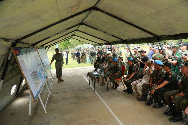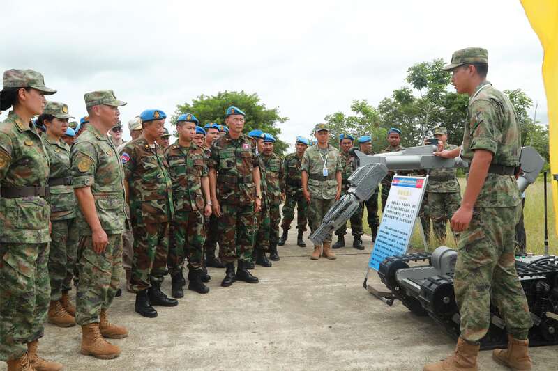 来自14个国家的参训官兵及驻柬埔寨武官,共300余人参加了启动仪式。仪式结束后,各国官兵共同参观了中方扫雷排爆装备器材展示和医疗救护场地设置,以及柬埔寨清排出的各式地雷、未爆物等,并听取了有关雷场简报。
