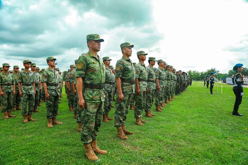 启动仪式现场,参加行动的多国官兵整齐列队。