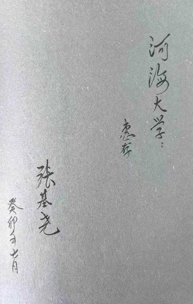 张基尧校友具有深厚的爱校情怀,长期关心学校建设发展,关爱师生成长成才。每逢学校重大活动,都会返校参与见证,并把自己的奋斗经历分享给河海师生。此次赠书他也亲笔致信,勉励广大河海学子,珍惜意气风发的青春芳华,珍惜当下配套齐全的实验室、门类广泛的图书馆、设施丰富的运动场等资源,追随治学严谨的教育大师、教授学者,汲取知识,勇担国家在水利水电事业的发展使命,为中国式现代化做出贡献。