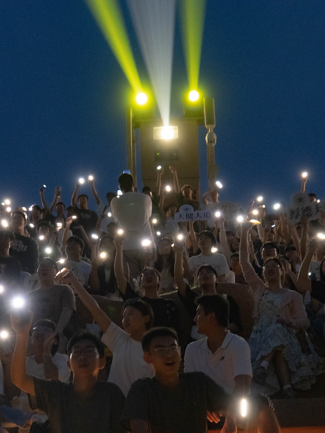 我们在校歌声中反复挥舞着闪光灯