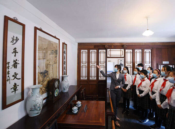↑北京李大钊故居的讲解员为前来参观的学生做介绍(2021年6月1日摄)。新华社记者 张晨霖 摄