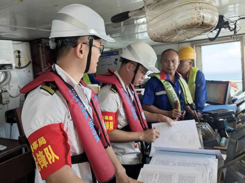 海事执法人员现场提醒船员落实防台措施。广东海事局供图