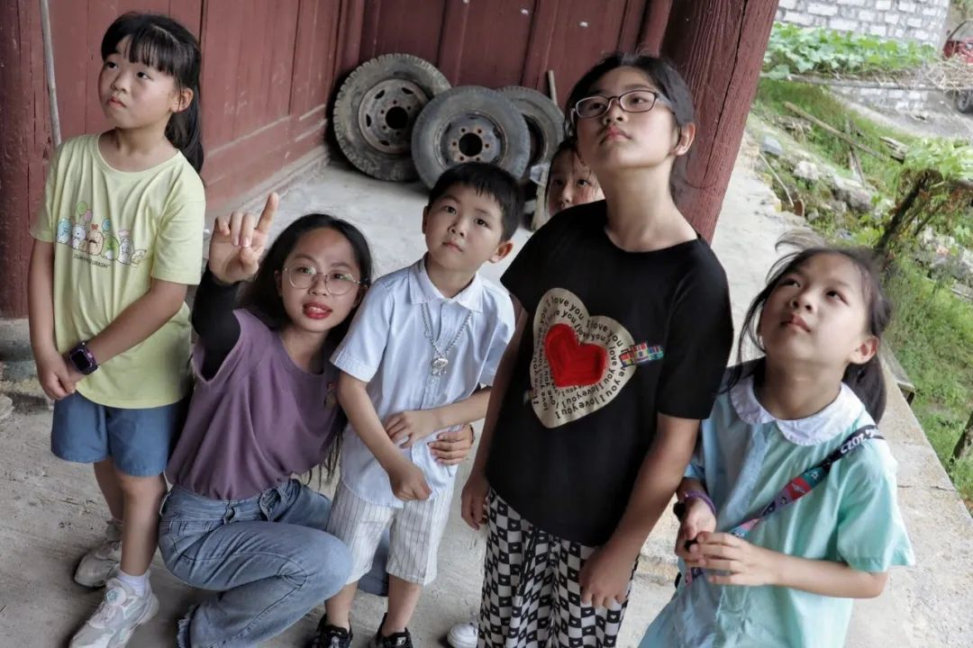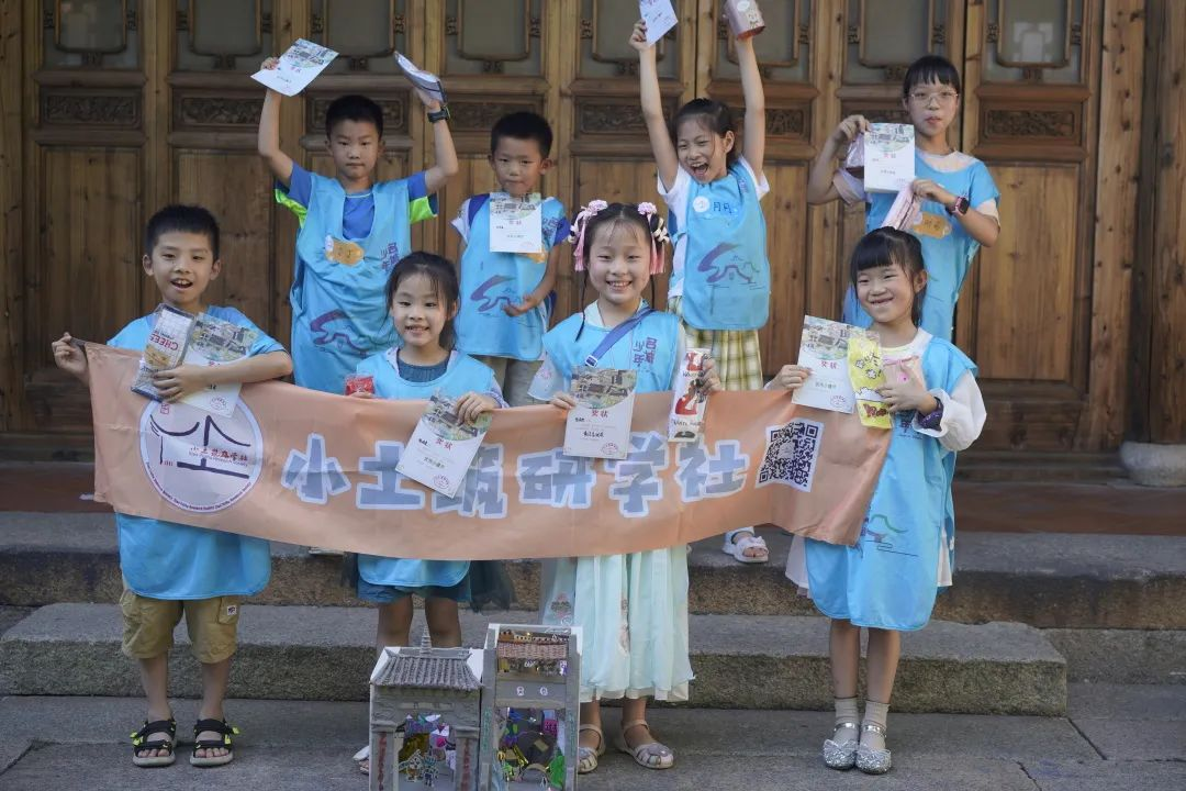 “哥哥姐姐们带我们认识了柱子、石头门槛、窗框,原来破破的老房子藏着 这么多的宝贝啊!”小土筑研学社的身影不仅仅出现在城市,还活跃在乡村。他们曾去到芙蓉村、嘉湖村、沙溪村等地,开展乡村文化、产业调研实践活动。初入芙蓉村和孩子们一起活动时,孩子们对家乡的认同感并不足,社员们便用画家乡的方式和他们沟通。于是,村里的大树、水井还有可爱的小黄狗跃然纸上。经过一番引导,孩子们叽叽喳喳地打开话匣子,说起村里的点点滴滴。