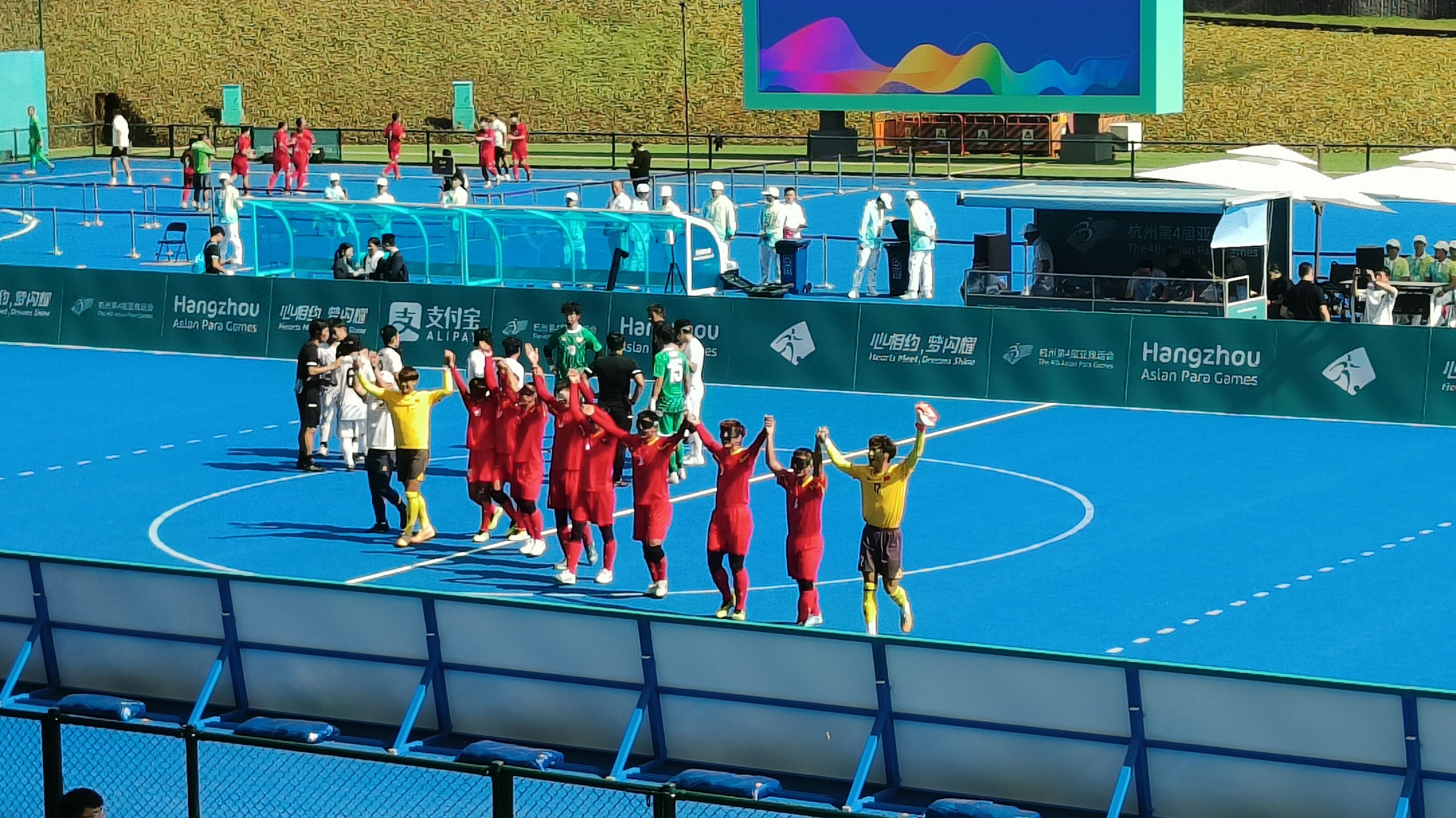 10月24日上午,杭州亚残运会盲人足球项目小组赛第二轮比赛在拱墅运河体育公园体育场展开。凭借着俞裕锬在下半场开场阶段的入球,中国队以1∶0战胜日本队,收获了本届亚残运会的两连胜。
