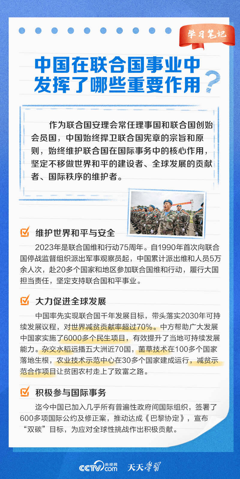 在联合国成立78周年之际,央视网《天天学习》栏目特梳理联合国相关知识点及我国在联合国事业中发挥的重要作用,与您一起学习。