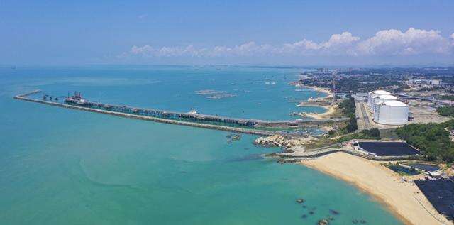天碧海蓝,一条鲜红的码头钢桥犹如赤龙卧波,迎接着跨洋而来的油轮;沙滩之上,一座规模宏大的石油炼化城拔地而起,在阳光照射下熠熠生辉。这里是位于揭阳大南海石化工业园区的中石油广东石化炼化一体化项目。