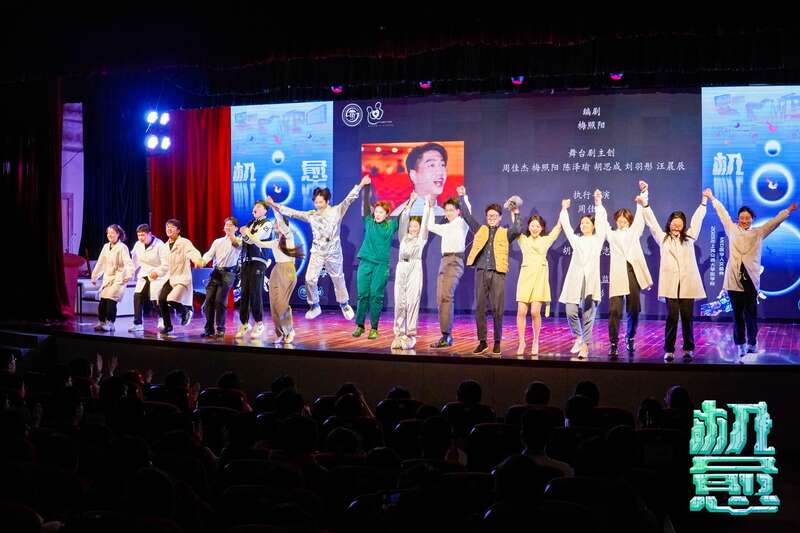 一群医学生发挥想象与创造力,组建起节目、舞美、影像、联络等团队,耗时两个月打造出了一场沉浸式医学人文盛典。主创团队关注医学前沿发展,结合现有医疗背景,自主创作以“AI系统疾病诊疗”为主题的未来医学故事。医学生演员们利用课余时间,共进行了20余次排练打磨。剧情中,AI、医生和患者三方面的冲突让观众身临其境,体验到“未来已至”与现实的冲撞。同时,在台前幕后穿梭的医学生们则共同精心完成了现场所有可视化、灯光、音效等舞美设计,为打造最佳视听效果完善每一处细节。
