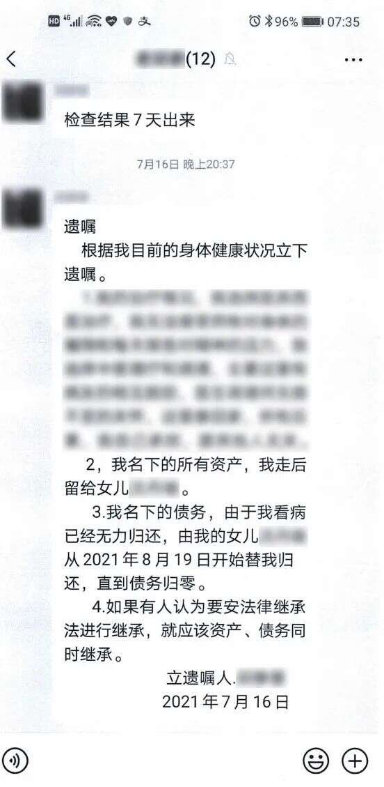 母亲病重之际,在家庭微信群里留下了一则信息。表示财产全部由女儿继承,但其他继承人认为这份遗嘱无法证实,母亲的真实意思应当认定无效。