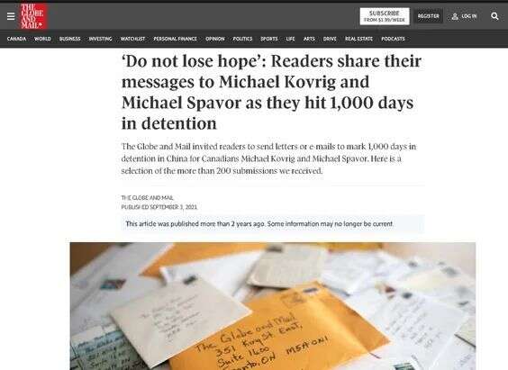 然而,尽管两人很快就对我方认罪悔罪,可加拿大从政府到媒体,乃至两人的家人,还有其他美西方媒体,却都坚称两人不是间谍,是被“冤枉”的。加拿大的《环球邮报》甚至还在两人被我方羁押满1000天的时候,煽动加拿大民众通过加拿大驻华大使馆给两人写信去支持他们。