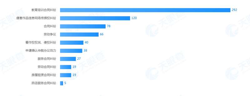 天眼查数据显示,在某教育培训机构涉及司法案件的主要案由中,有关教育培训合同纠纷就有292起,占据首位。其中,有117起案件已结案,175起案件尚未结案。
