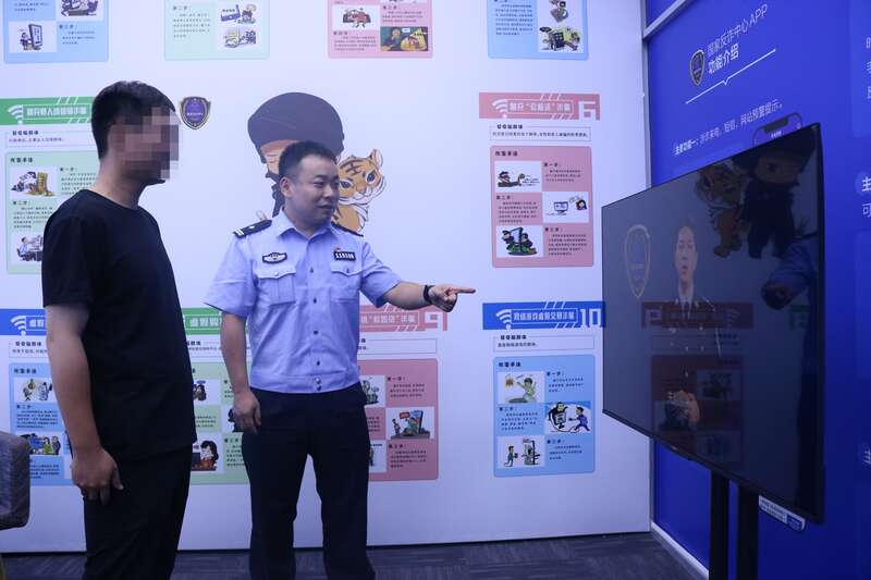 民警在反诈骗宣教站进行宣教。徐海庆/摄