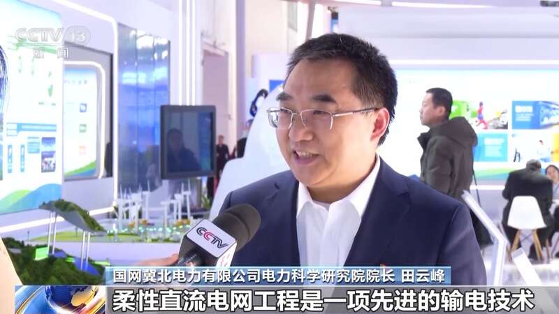 国网冀北电力有限公司电力科学研究院院长 田云峰:柔性直流电网工程是一项先进的输电技术,它可以把张北的风能、太阳能转化为安全可控的电能,输送到北京负荷中心。这也是世界上技术最先进的绿色能源供应链体系。