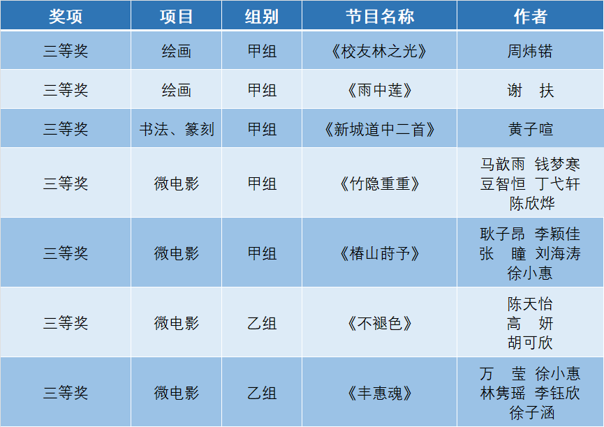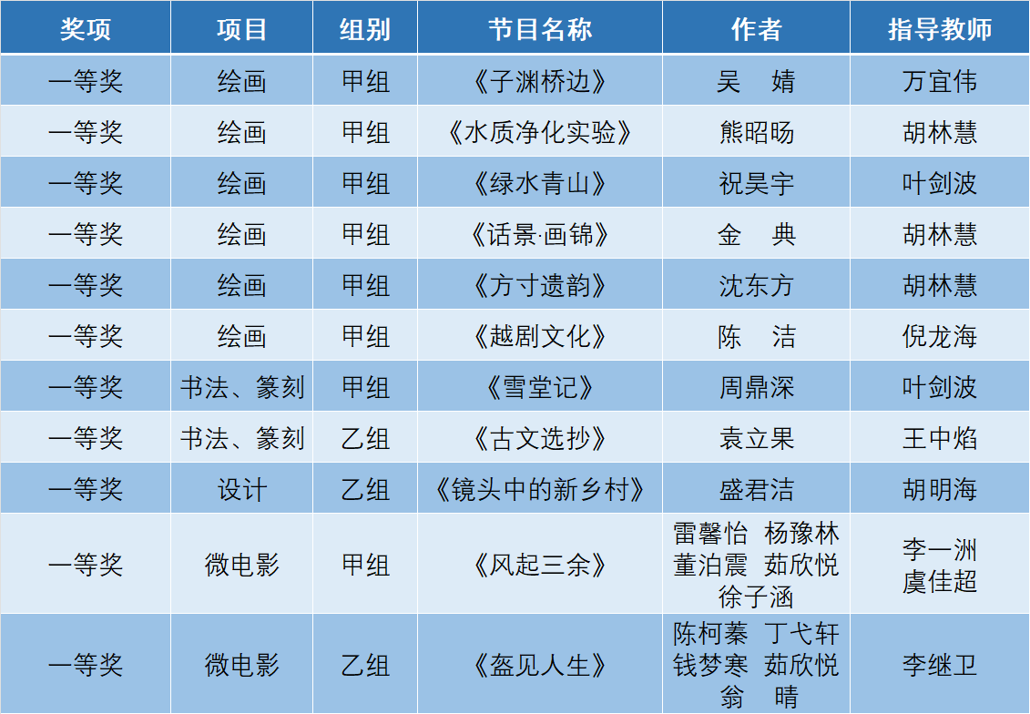 学生艺术作品类一等奖11项
