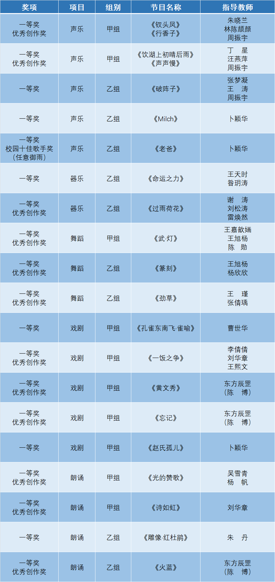 艺术表演类一等奖19项
