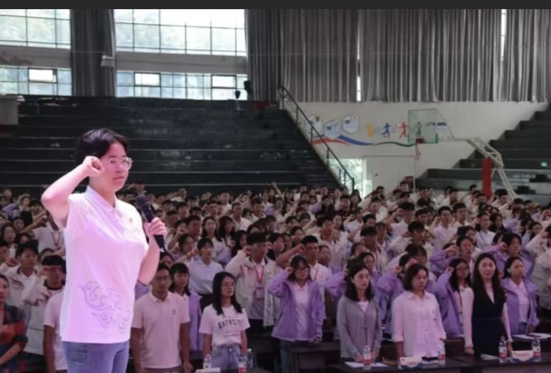 2023年出征仪式上,清华大学研究生支教团成员李润凤带领全体志愿者宣誓。
