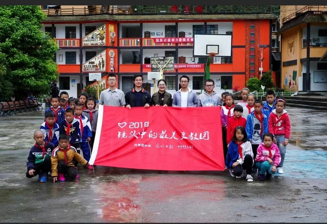 2018年,云南大学第21届研究生支教团志愿者与学生在一起。