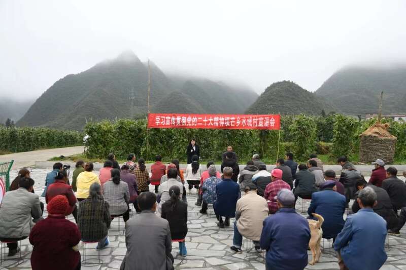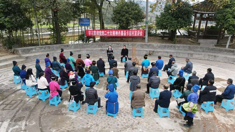 两位宣讲人配合默契,从生态保护、就业养老到医疗教育,从村寨发展近况到未来五年规划……讲的是党的二十大精神,说的是身边发展故事。