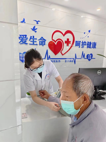 染坊村离合肥市仅20分钟车程,村民们都集中住在一个很大的小区,村卫生室离小区很近。有不少年纪大的村民出门买菜,路过村卫生室,会顺便来量血压、测血糖,然后再回家做饭。
