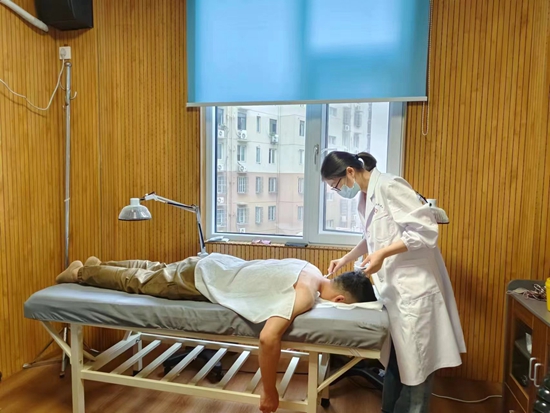 11月3日下午5点左右,大学生村医刘玉洁快要下班的时候,一位出租车司机来找她看病。司机颈椎不舒服,经常眩晕,刘玉洁用按摩、针灸和拔罐的方式,持续治疗了近1个小时。
