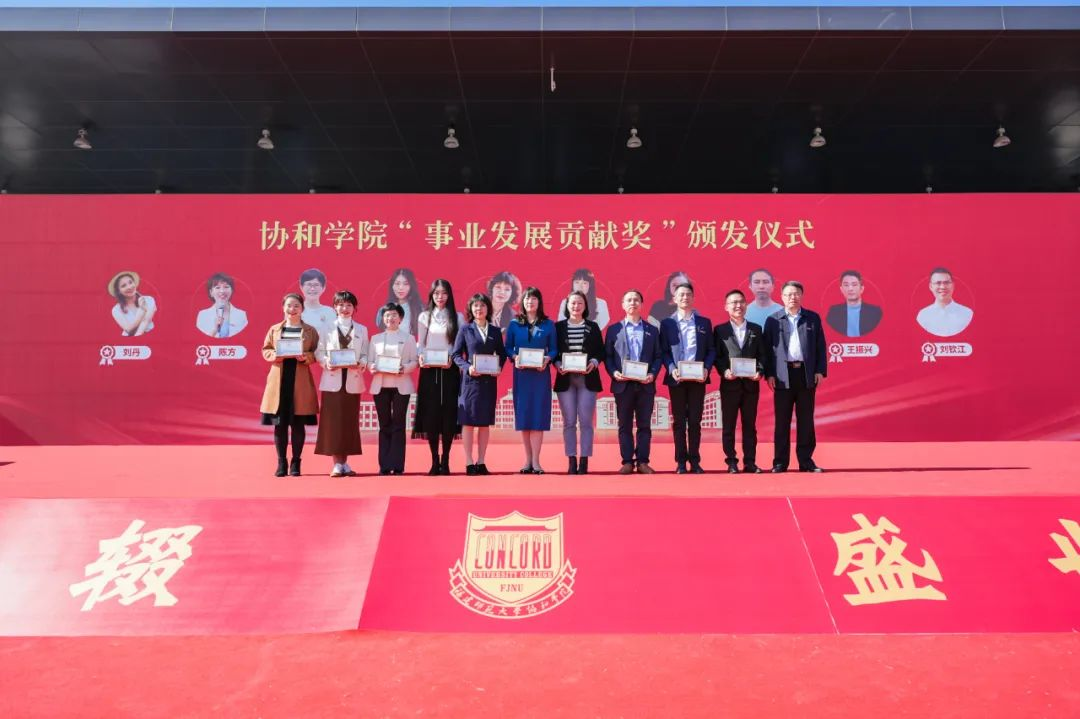 林官斌先生颁发了学院“事业发展特别贡献奖”,为在院工作10年以上的在岗教职工代表颁发了学院“事业发展贡献奖”。