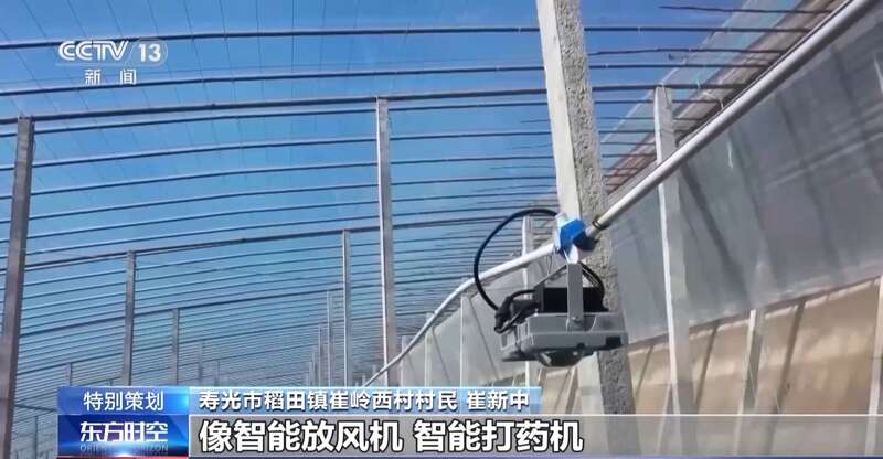 寿光市稻田镇崔岭西村村民 崔新中:这个棚里安了很多智慧设备,像智能放风机、智能打药机、水肥一体化、智能卷帘机、智能补光灯。这些智能设备,通过手机都能操控,省时省力。