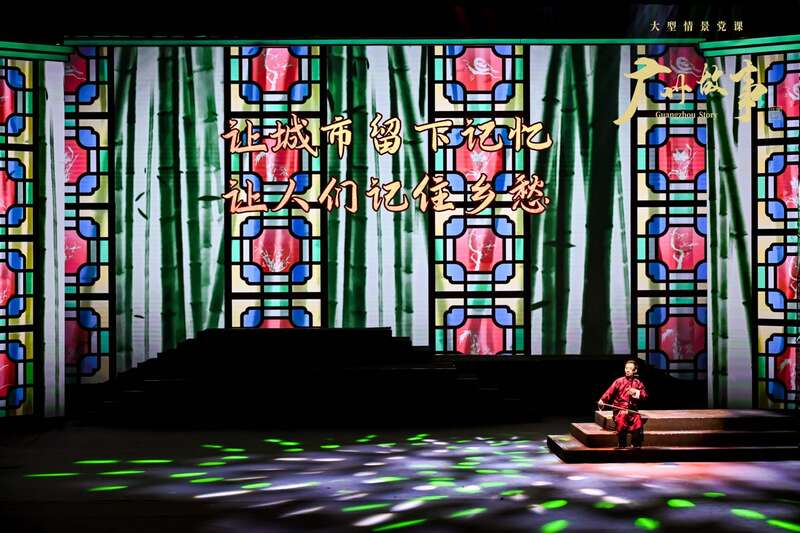 在《广州故事》中,歌曲《梦里的珠江缓缓地流》 、舞蹈《广绣》、童谣《落雨大》,还有粤剧经典剧目,舞台大屏幕中反复出现的岭南风格的青砖房、麻石路、老建筑、老宅子、老街区,都镌刻着城市的记忆,浸润着悠悠的乡愁,体现着广州的文化魅力。