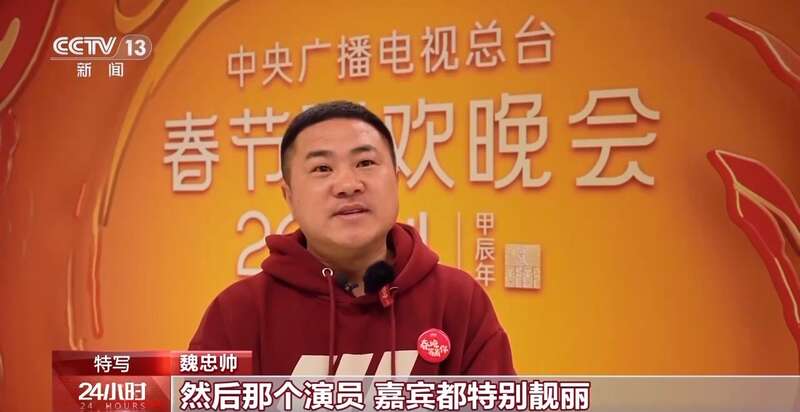 魏忠帅:第一次看春晚彩排,特别震撼。特别大的舞台,演员、嘉宾都特别靓丽,看得特别赏心悦目。