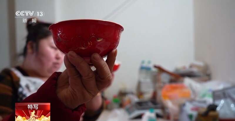对于记者送来的总台文创“春碗”,母子俩也是爱不释手。