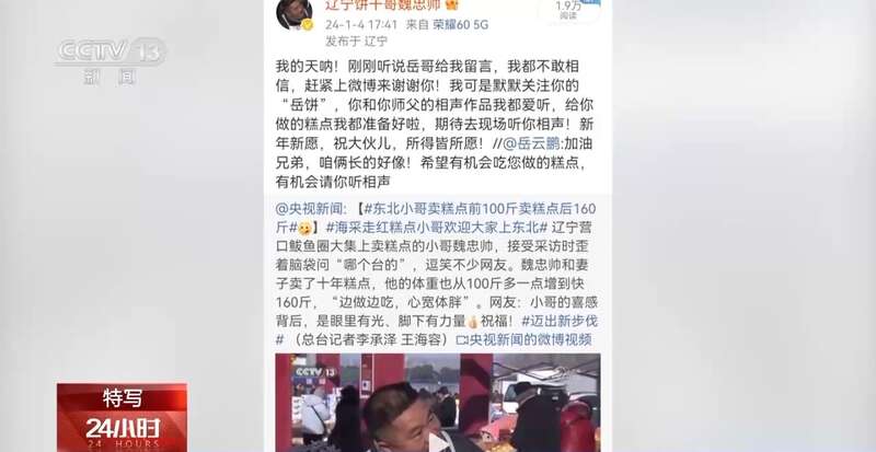 年初时,相声演员岳云鹏曾在网上给魏忠帅留言,约定有机会要品尝他做的糕点,请他听相声。在总台,这个受到很多网友关注的线上之约兑现了。