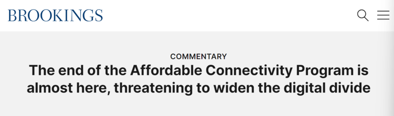 美国联邦通信委员会(FCC)主席杰西卡·罗森沃塞尔(Jessica Rosenworcel)今年1月初在致议员的信中说:“如果国会不能在近期为ACP提供额外资金,数百万家庭将失去他们用来支付互联网服务费的补贴。”罗森沃塞尔还补充说:“这也意味着大约1700家互联网服务提供商将受到该计划终止的影响,并可能停止向不再获得该计划支持的家庭提供服务。”2月8日,由于缺乏资金,该计划新注册用户已被冻结,FCC表示,ACP的覆盖范围将于今年4月结束。
