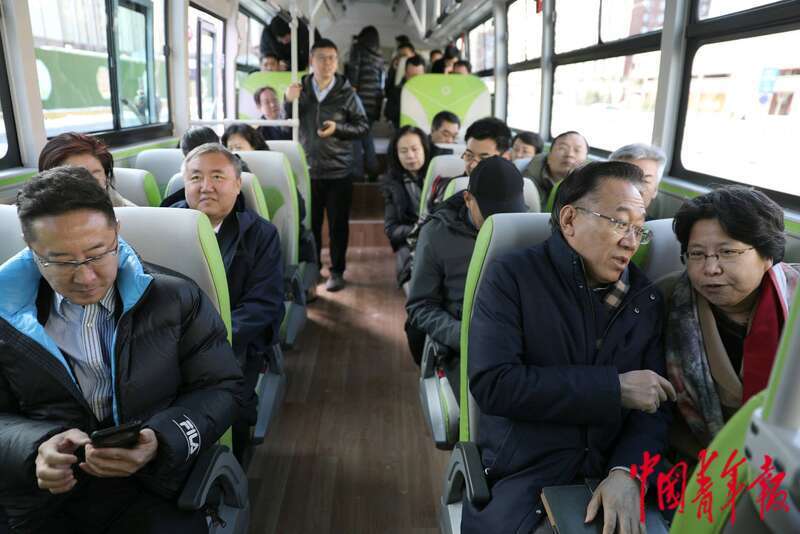 2月23日,北京市朝阳区,部分北京市政协委员试乘即将开通的通学公交217路。中青报·中青网记者 陈剑/摄