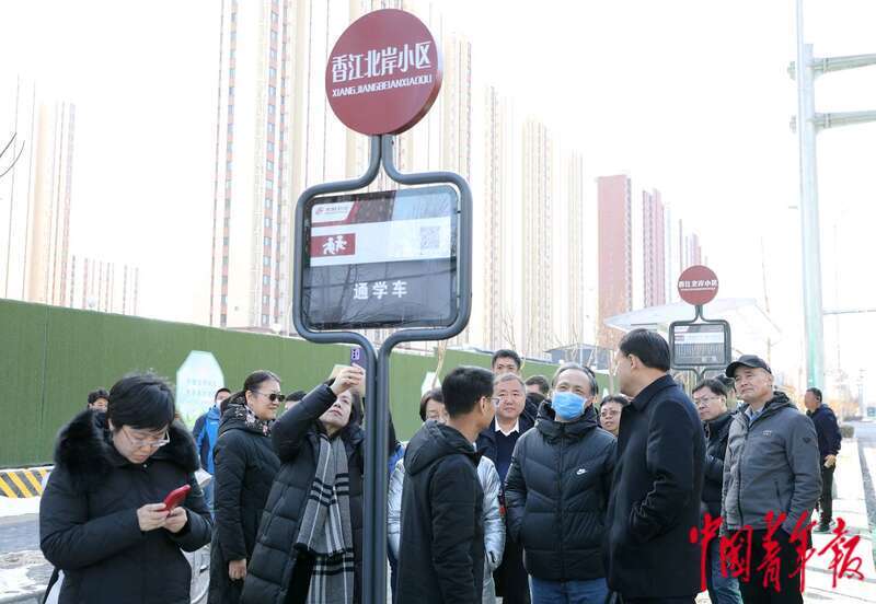 2月23日,北京市朝阳区,部分北京市政协委员在通学公交217路香江北岸小区站前了解情况。中青报·中青网记者 陈剑/摄